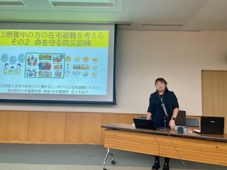 10月18日土曜の午後2時より、長久手市役所西庁舎3階研修室において、在宅ケアに関するシンポジウムを開催しました。今回は113名の方に集まっていただくことができました。今回のテーマは「在宅避難のすすめ」ということで、災害時に要介護状態の方やご高齢の方、障害をお持ちの方、医療的ケアを必要とする方が、ご自宅という住み慣れた場所で災害を乗り切る「在宅避難」という選択肢について考えていただくために講演を行いました。