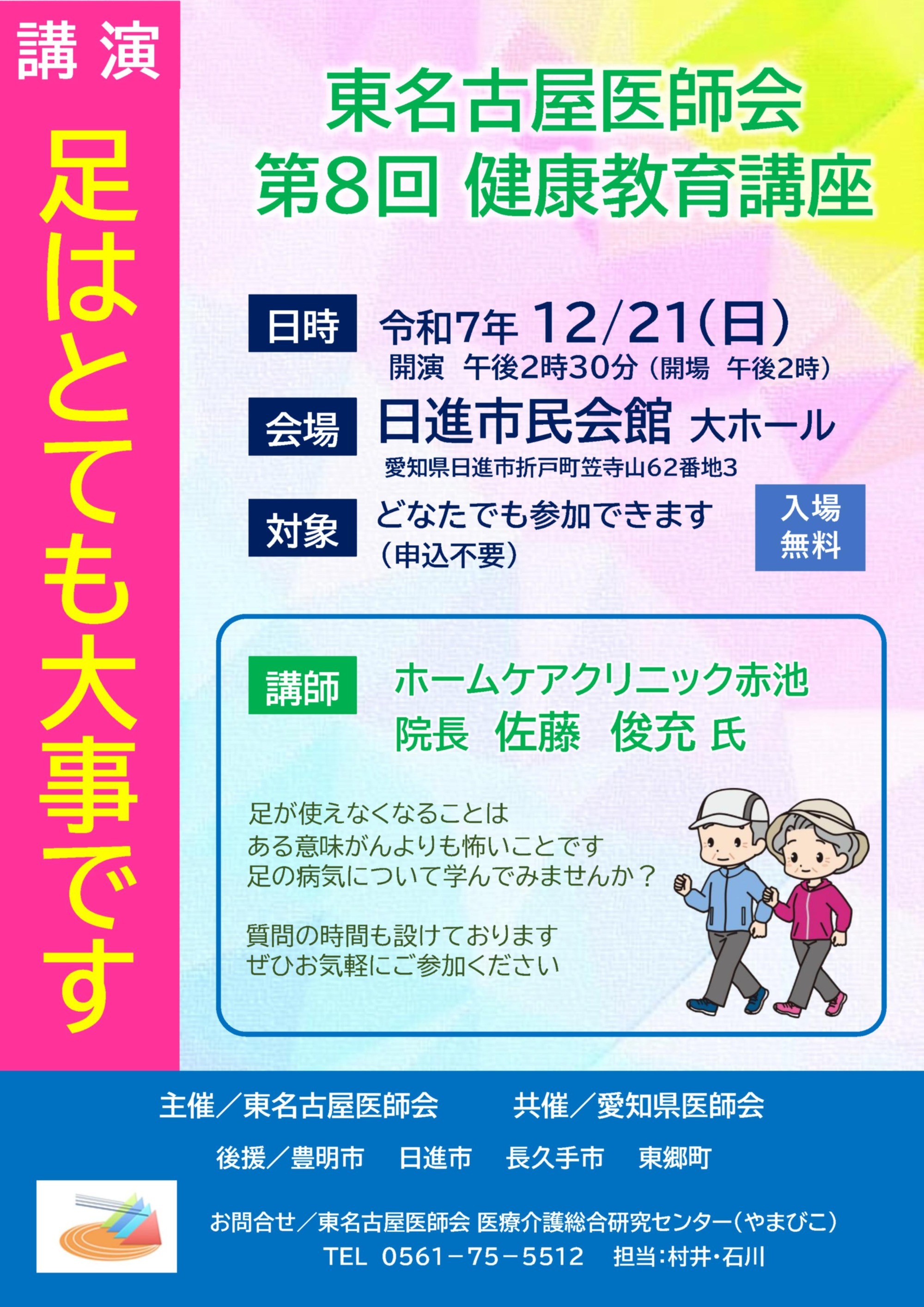 令和7年12月21日(日)開催 「東名古屋医師会 第8回 健康教育講座」のご案内